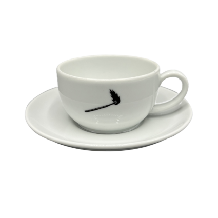200ml porseleinen set voor Cappuccino met Lucifer Logo. Kop en schotel.